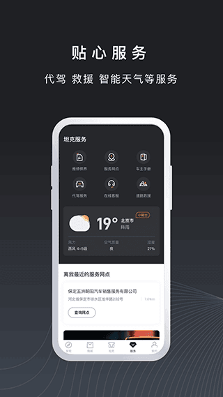 【智能的车控】坦克车况全掌控,绑定爱车,随时关注车辆健康状况,体验互联服务或智能控车功能;
