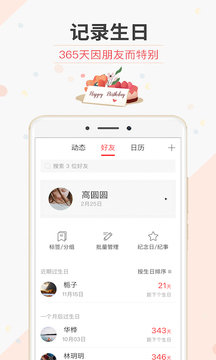 2、生日提醒:用户可以添加好友的生日信息,并在生日当天提醒用户发送祝福,超级方便。