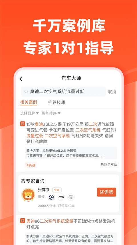 覆盖100多个汽车品牌,每一个汽车品牌都有专业的汽车技师在线解答,让车主放心