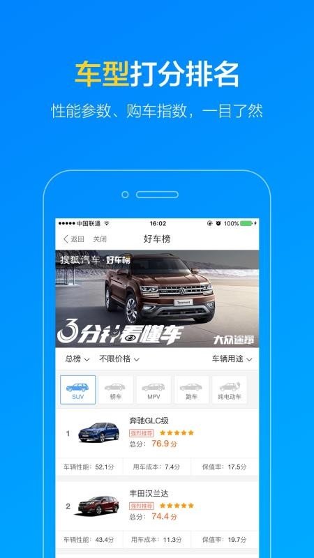 3、【好车榜】众多好车,参数看不懂,不知道买哪个?搜狐汽车特推出好车榜,让您看分选车,1秒变身懂车大咖。