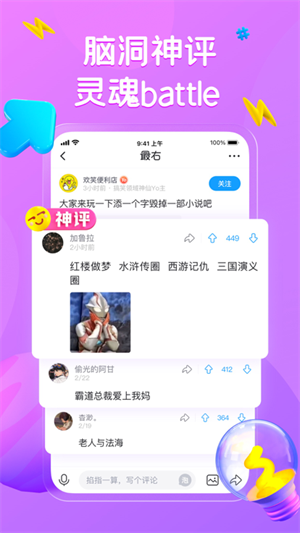 最右的产品描述中介绍“大神网友机智神评论,抖机灵、神补刀,好笑不只是帖子”。