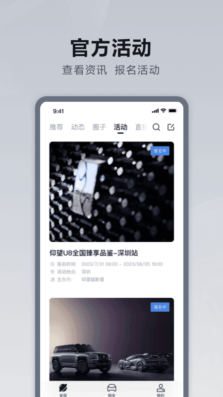 用户交流社区:仰望汽车app打造了一个用户交流社区,用户可以在这里交流心得,参与活动,收获好友。