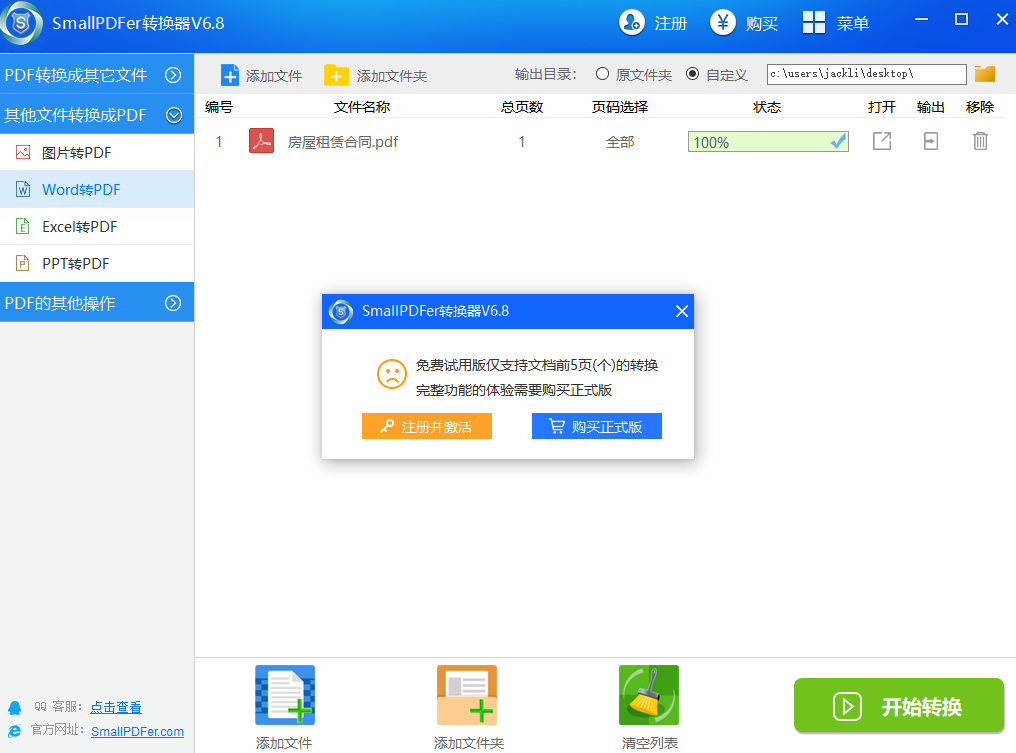 2、引导式操作界面:软件简单易用,引导式操作,只需要4步,完成pdf的转换处理。
