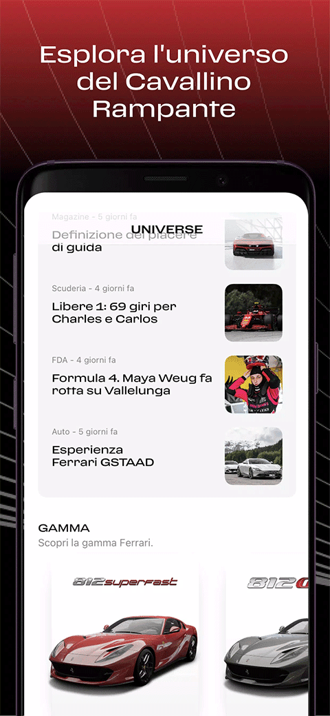 法拉利车载互联app带领用户走进法拉利的世界。可以通过手机,与车辆进行互联,带来许多种有趣的体验。这里有各种相关资讯,了解新车型,讯问新活动。可以购买到各种法拉利的周边产品,是线上商城。名字叫做MyFerrari,我的法拉利。