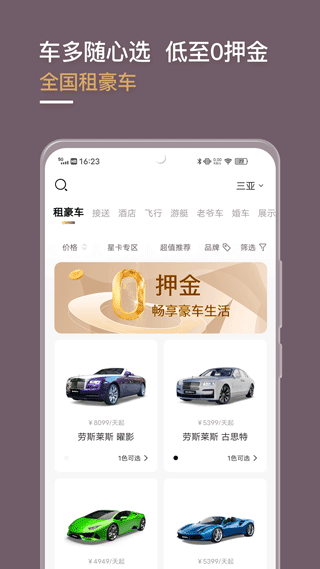 光速超跑租车是一款为大家带来众多豪车租赁的软件。覆盖范围广发,各种中心城市都有涉及。通过软件进行租赁,可以享受各种优惠活动,减免各种押金。客服随时待命,解答您的任何问题。感兴趣的小伙伴,点击下载感受吧。