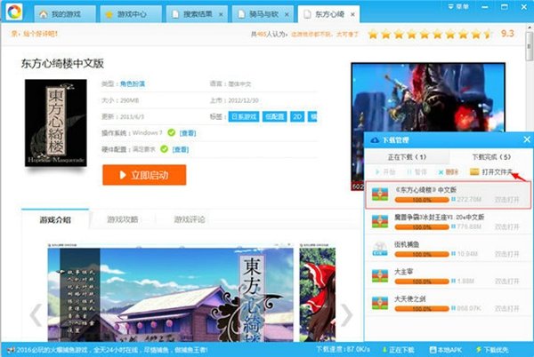 软件有着独到的下载加速技术,并且能实时的同步全网最新的游戏资源,