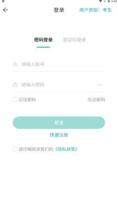 打开“潇湘成招最新版”,点击立即开始,进入登录页面。点击底部快速注册,注意勾选下面“阅读隐私政策”,进入注册,依次填写个人基本信息,通过本人手机验证码验证,设置密码,完成注册。