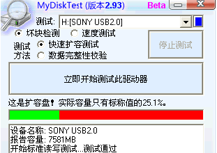 MyDiskTest可以方便检测出U盘/SD卡/CF卡等移动存储产品是否经过扩充容量,功能是非常强大的,软件很小,实用性很强,让您打造出专属于自己的移动硬盘。