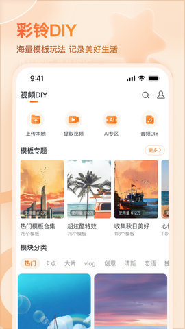 1、铃声创作,个性化DIY。整合当下最热、最潮、最新的铃声资源,打造个性化剪辑,一键设置,一步完成。