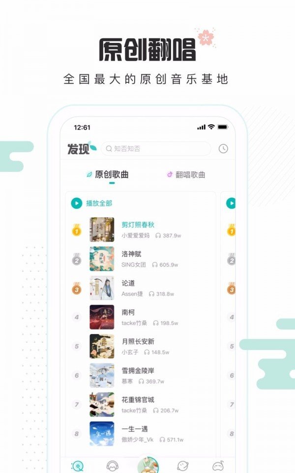 5sing伴奏网是一款原创音乐社区应用,这里入驻了众多实力唱将,在这里你可以聆听很多好质量的原创音乐作品,不论是古风,摇滚,民谣还是各种流行歌曲,在这里都应有尽有,那还可以与好友交流,帮助大家们更好的进行创作,有需要的千万不要错过。
