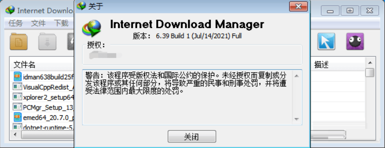 7、IDM会默认启动,自动弹出注册提示,直接点击“关闭”按钮彻底关闭程序即可