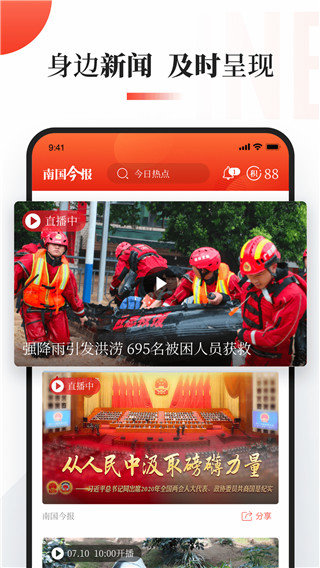 现场直播功能:南国今报软件具备现场直播功能,能够实时追踪并传达社会各界最新鲜、最有价值的信息,使用户能够及时了解新闻事件的进展。