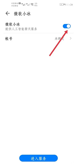 5、点击进入微软小冰,选择关闭服务功能,如此便能关闭虚拟男友。