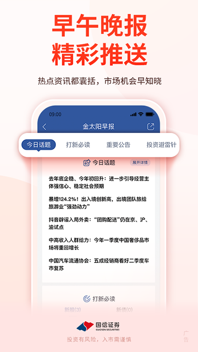 国信证券app提供全面的行情、交易、资讯和理财投资服务,支持普通交易和两融,拥有条件单、图形单、算法单等多种高级交易功能。是一款为大家带来证券交易完美操盘的软件,十分惊喜。有 需要的小伙伴,点击下载吧。软件名称,国信金太阳。