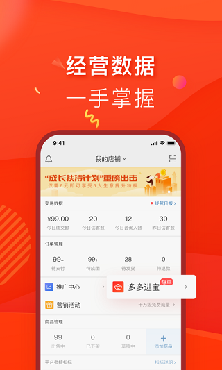 拼多多商家版0元开店是一款为在拼多多开店的小伙伴,带来优质服务的软件。在这里,你能获得很多很精致的功能,例如可以在这里获得多样化的营销工具,还有商家社区,进行学习和成长,助力你成为最顶级的网店达人。