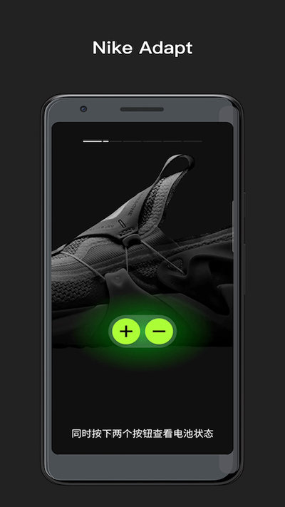 通过手机即可调整Nike Adapt 鞋款的松紧度。Adapt 应用程序可针对双脚分别进行微调,并显示鞋款的松紧程度,作为个人专属参考点。