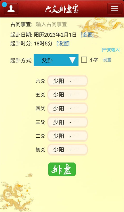 起卦功能齐全,满足主流爱好者群体的起卦习惯,排盘记录永不丢失。