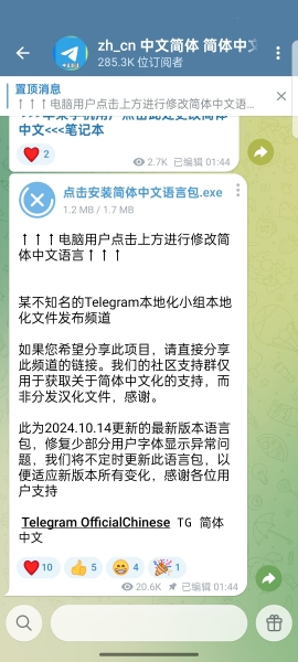 4、需要发送中文包三个字到群里,电报群内置机器人会自动回复第一个简体中文语言包,这里需要特别注意:一定要点第一个,不需要下载。