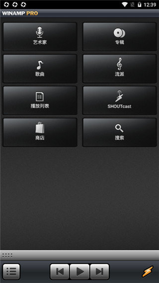 除了在操作向导的功能外,Winamp手机版的主界面还提供给用户不同的类型的歌曲分类方式,如按照艺人、专辑、歌曲、播放列表和历史、搜索等。大多数人对于这些分类方式很熟悉,只需轻轻触摸便可进入相应内容。