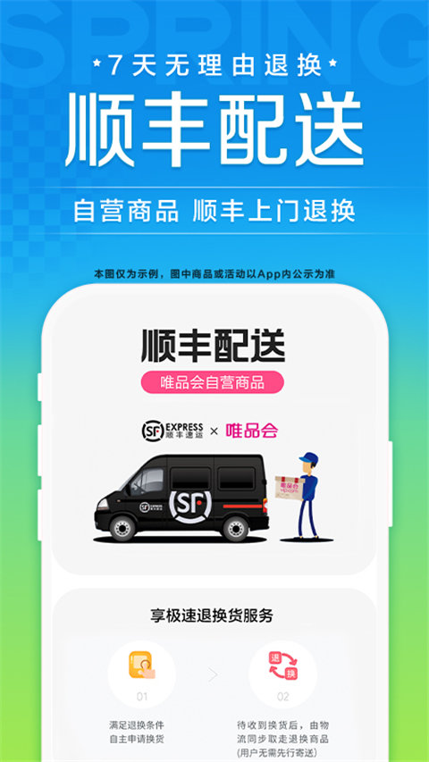 7天无理由退货,自营商品免费上门收件(自行寄回返10元唯品币);