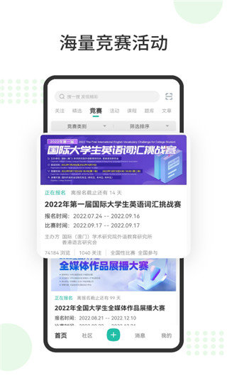 赛氪app是一个大学生社区平台。它鼓励大学生分享自己的成功经验、成长历程,以及参赛经历,为广大学子提供了一个交流学习的空间。在这里,用户可以拜读学长学姐的学神日志,学习他们的参赛技巧和经验,逐步规划自己的未来发展。