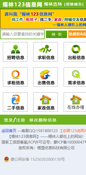 在锡林123信息网中能够招聘求职、出租房子、找临时工、招聘司机等