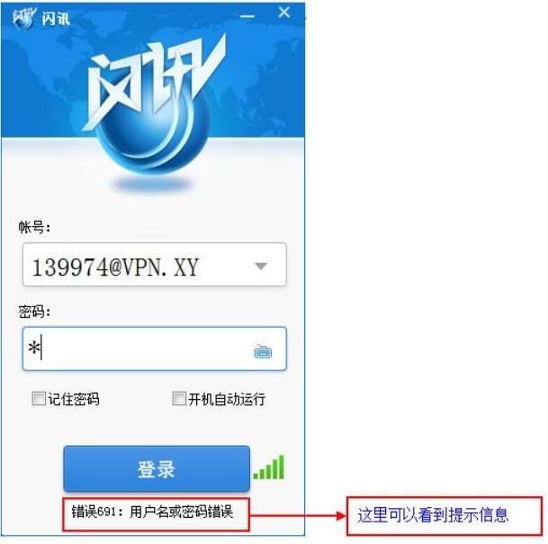 2、若是账号密码毛病,在登录操控键位的下方会展示提醒信息,以下图示: