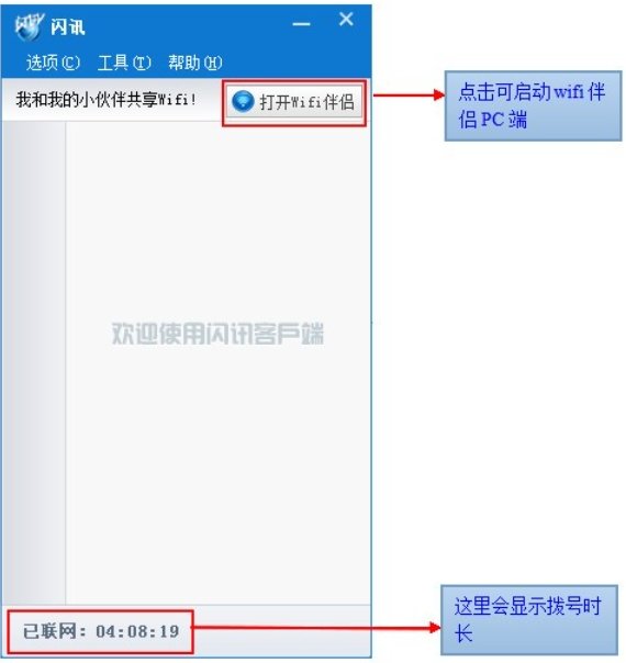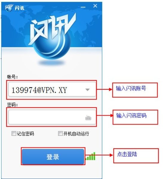 1、闪讯客户端启动后,需求输出账号和密码,方可拨号,以下图示: