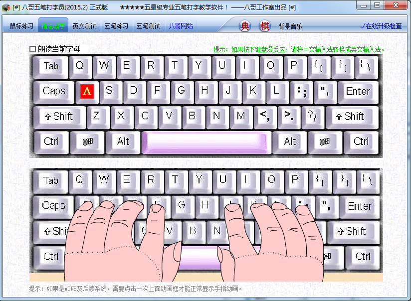 第三步、练习熟悉八个基本键的位置(请保持第二步正确的击键方法)。
