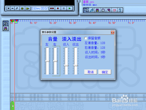 巨星mtv2002在设置视频的同时可以定义是否保留声音和调整左右声道的音量大小,也可以设置声音淡入淡出。