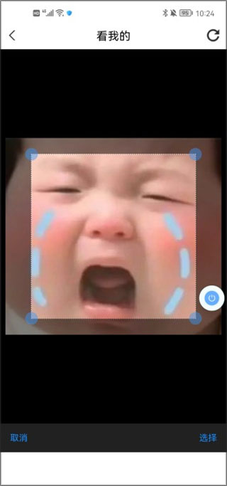 第三步:按下图虚线框提示剪裁照片后点击右下角【选择】