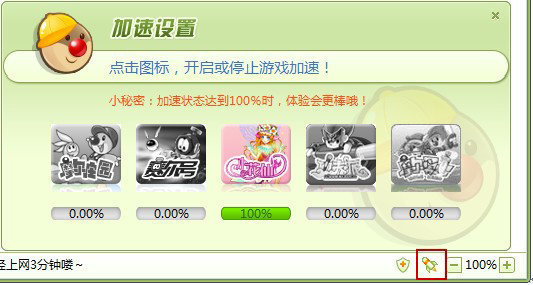 淘米儿童浏览器为摩尔庄园和赛尔号两款游戏提供加速功能,用户只要安装了淘米儿童浏览器,玩摩尔庄园,赛尔号就再也不用忍受漫长的等待过程了。通过看底部栏的加速状态显示图标就可以立即知道当前的加速状态。