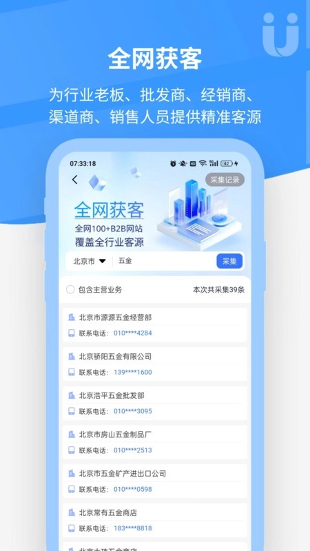 关键词客源:依托全网地图大数据,输入城市与关键词,即可采集各地匹配的实体商家资源。