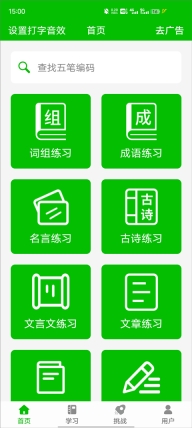 1提供五笔输入法的基础教学、编码反查、拆字练习、错误记录与练习、字根练习以及文章练习等功能。