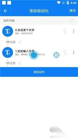 2、动作添加流程:浏览应用内脚本,若不合用,可依自身需求添加点击、长按、滑动等动作,比如玩游戏需快速点击,可精准设定 。