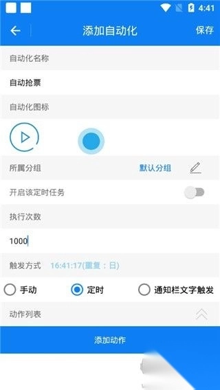 4、启动运行方式:使用时,在应用中选择已保存设置,连点器便按添加动作自动操控手机,如抢购时提前设好,到时一键启动 。