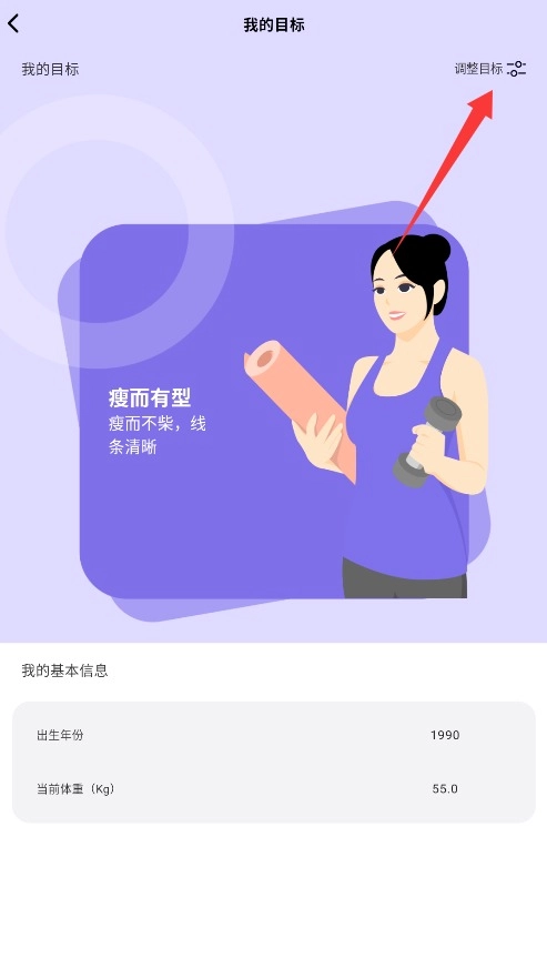 1、进入个人目标设置界面,结合自身体能状况,选择适合的健身方向并调整训练强度。