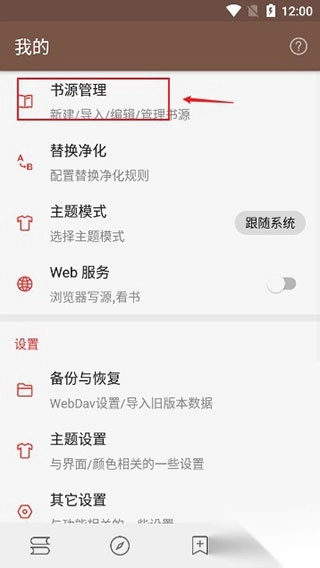 1、在本站下载打开软件,点击右下角【我的】按钮 3、 [书源管理];