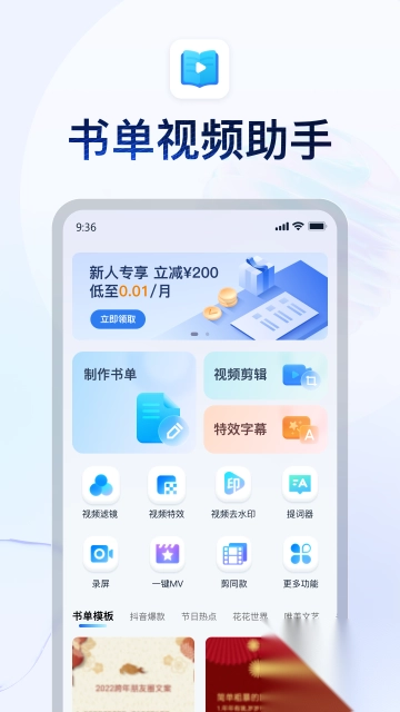 书单视频助手,堪称功能完备的视频配音与图片处理软件。借助它,用户无需手动为视频添加文字配音,其智能语音系统会自动识别,为文字匹配背景音乐或进行朗读配音,便捷程度超乎想象。不仅如此,书单视频助手还支持书单视频制作、视频剪辑压缩、格式转换等诸多功能,并且配备海量书单模板供用户免费使用。哪怕是毫无经验的新手小白,也能借此迅速掌握书单视频制作的关键技巧。无论是个人日常分享、企业宣传,还是媒体运营、广告制作等场景,它都能大显身手。无论您是企业还是个人,书单视频助手都能契合您的制作需求。有需要的朋友,欢迎下载体验!