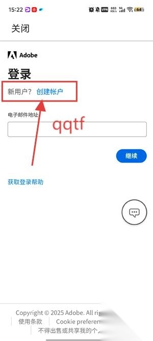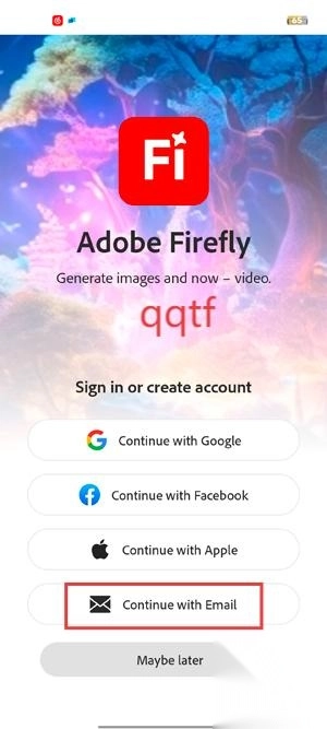 打开你的adobefirefly,在登录界面点击用邮箱继续。
