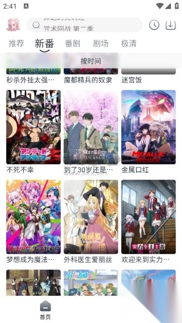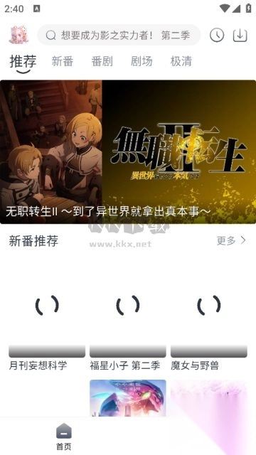 打开 APP,主要分为推荐、新番、番剧、剧场、极清五个板块。