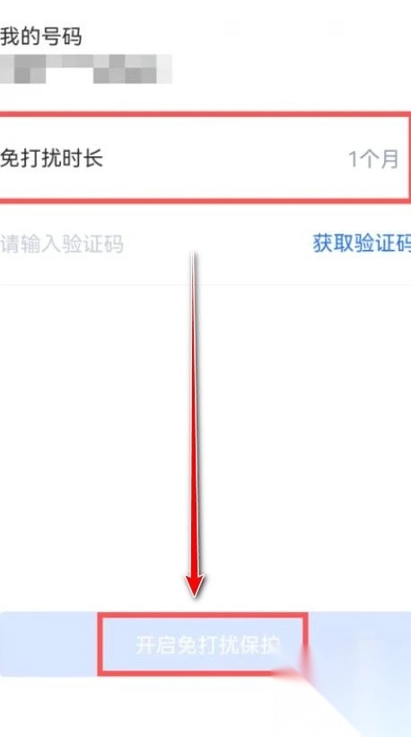 5.选择免打扰时长,然后输入验证码,最后点击开启免打扰保护即可。