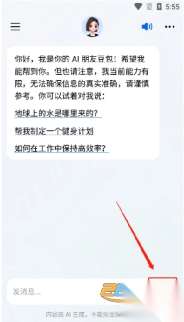 3、即可成功登陆,可直接在下方语音输入与豆包聊天