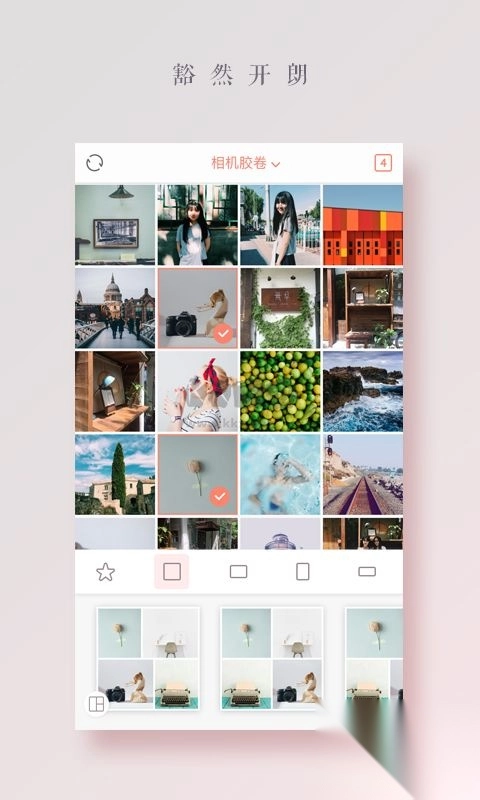 根据选择的照片自动生成各式模版,模版可依据不同需求切换至不同比例;