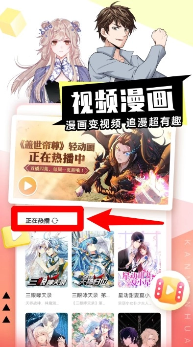 2. 点击视频漫画页面,即可观看热门轻动画内容。对于热门连载,也能够直接点击封面进入播放页面。