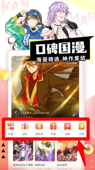 1. 首页设有分类、排行、动态漫、活动等栏目,用户能够依据自身兴趣,快速切换查找心仪的漫画或小说。