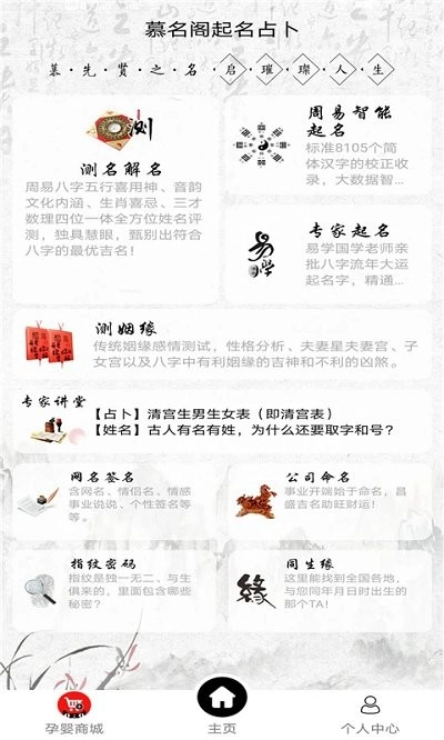 你知道吗?起名馆都爱用的宝宝起名APP,就是慕名阁宝宝起名app!慕名阁这个品牌,涵盖周易生辰八字分析、宝宝起名与测名、测姻缘八字合婚,还能起网名、设计个性签名,更有专家讲堂等超多免费功能。不仅如此,像周公解梦、老黄历择吉日吉时、塔罗牌占卜、星座运势以及家居风水等实用功能也即将重磅上线!选择慕名阁,您的眼光绝对没错!