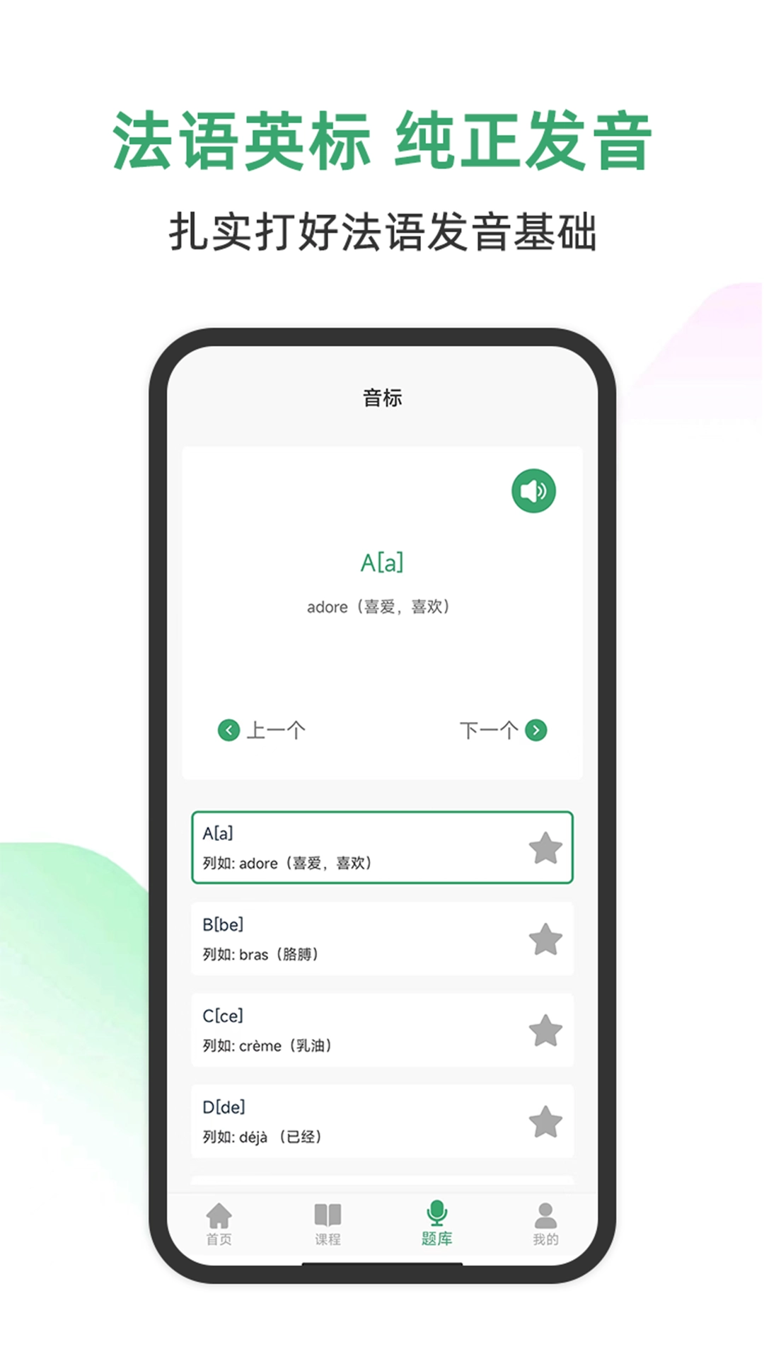 学习法语基础,从法语字母发音表入手,涵盖元音、半元音及辅音的标准发音与发音技巧。每日法语听力相伴,还有贴心的出国翻译官助力。