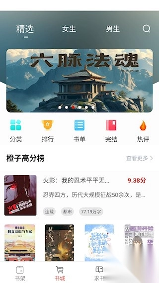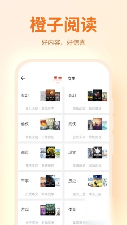2、分类与搜索功能:橙子阅读为使用户能更便捷地查找与管理书籍,特意打造了详尽的分类及搜索功能。借助这些功能,用户依据自身喜好与阅读需求,就能轻松寻得心仪书籍。