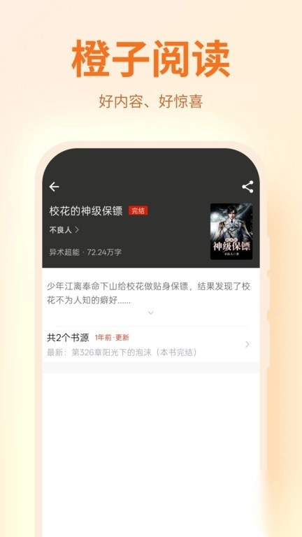 1. 海量阅读资源:橙子阅读汇聚众多书籍资源,涵盖小说、散文、诗歌、传记等各类体裁,使用户无论何时何地,都能轻松找到心仪读物。